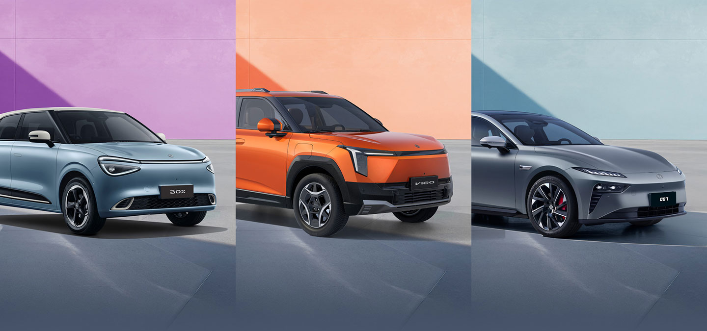 The initial three model fully electric lineup consists of a small five-door hatch, a compact SUV and an eye-catching sports-performance sedan. Offering distinct personality and capability, the new models are named Box, Vigo and 007, delivering urban versatility, everyday practicality and strong performance.